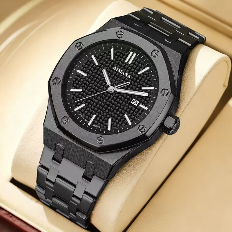 AIMANA Men’s Luxury Quartz Watch – Square Premium Steel Case with Luminous Dial, Water & Scratch Resistant, Featuring Date Display. A Stylish and Versatile Timepiece – Includes a Free Elegant Women’s Watch.